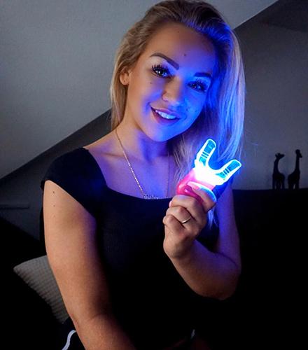 "Utilizo el kit de blanqueamiento dental una vez a la semana. La aplicación es súper fácil y tienes las manos libres para otras cosas. Se puede ver una clara diferencia después de unas pocas aplicaciones. Me encanta el resultado. 😍“